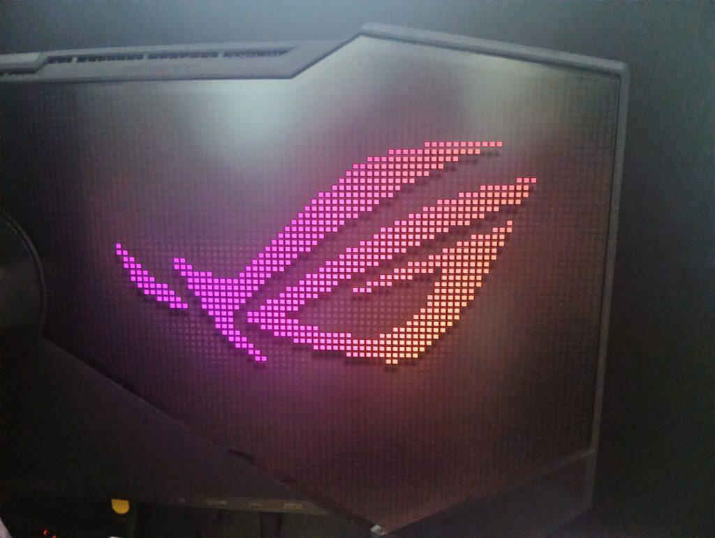 這台螢幕依 ROG 產品慣例,背部一樣有 RGB 燈光,而且還是個 ROG 敗家之眼標誌的 RGB 燈光,非常有意思。